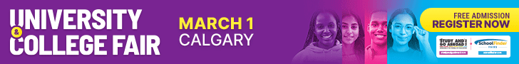 Calgary’s Study and Go Abroad / SchoolFinder Fair is on Sunday, March 1 from 1-5pm at the Calgary TELUS Convention Centre. Explore colleges, universities, gap year, and study abroad options — plus don’t miss the free ScholarshipsCanada seminar at 12pm!