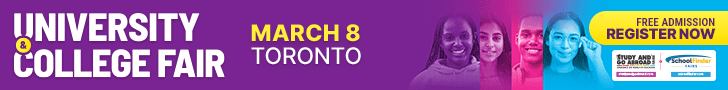 Toronto’s Study and Go Abroad / SchoolFinder Fair is on Sunday, March 8 from 1-5pm at Toronto Reference Library. Explore colleges, universities, gap year, and study abroad options — plus don’t miss the free ScholarshipsCanada seminar at 12pm! |